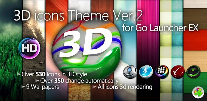 Overview: ▶ 3D Icons Theme Ver.2 for Go Launcher EX